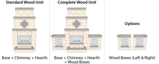 The Royal English Outdoor Wood Fireplace comes standard with the base, chimney and hearth.