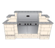 The Royal English Outdoor Island comes in a choice of 'Granite Blend' or 'Sandstone Blend' genuine Hanson Hardscapes stone. The Island can be used as a bar or it can be customized with an opening in the back to fit practical accessories such as a mini-refrigerator, storage shelving or a keg cooler (insert your own appliance).